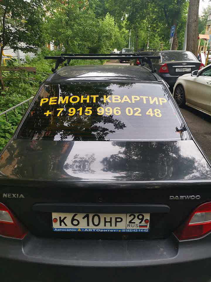 Оклейка плёнкой заднего окна автомобиля для компании по ремонту холодильников