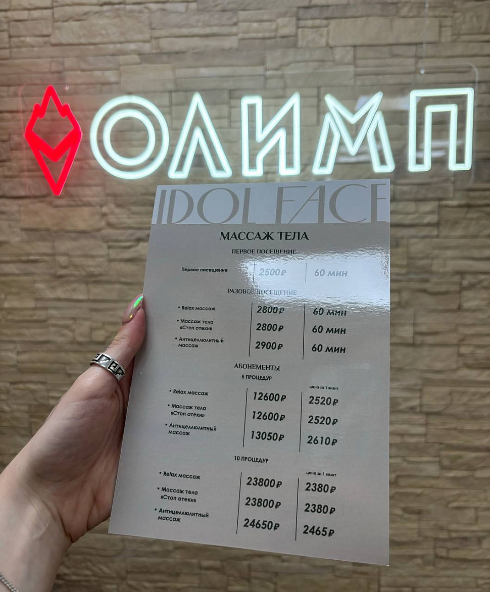 Все портфолио Назад Дальше Ламинированные прайс-листы для IDOL FACE О проекте Прайс-листы на мелованной бумаге 300 г/м2, цифровая двухсторонняя печать, глянцевая ламинация 250 мкм Срок изготовления 2 рабочих дня. Кто мы https://youtu.be/VIuj4labZm4 Похожие работы Наружная реклама для медицинского центра "Деломедика" Прайс-листы на мелованной бумаге 300 г/м2, цифровая двухсторонняя печать,... Подробнее Дизайн визитки для центра аренды спецтехники Прайс-листы на мелованной бумаге 300 г/м2, цифровая двухсторонняя печать,... Подробнее Оклейка автомобиля плёнкой для компании по изготовлению натяжных потолков Прайс-листы на мелованной бумаге 300 г/м2, цифровая двухсторонняя печать,... Подробнее Дизайн визитки для мастера депиляции Прайс-листы на мелованной бумаге 300 г/м2, цифровая двухсторонняя печать,... Подробнее Наружная реклама для банка "Сбербанк" Прайс-листы на мелованной бумаге 300 г/м2, цифровая двухсторонняя печать,... Подробнее Поисковое продвижение сайта винного бутика "Винела" Прайс-листы на мелованной бумаге 300 г/м2, цифровая двухсторонняя печать,... Подробнее Наружная реклама для компьютерного клуба "XO GAMING" Прайс-листы на мелованной бумаге 300 г/м2, цифровая двухсторонняя печать,... Подробнее Наружная реклама для кофейни "GAGARIN" Прайс-листы на мелованной бумаге 300 г/м2, цифровая двухсторонняя печать,... Подробнее