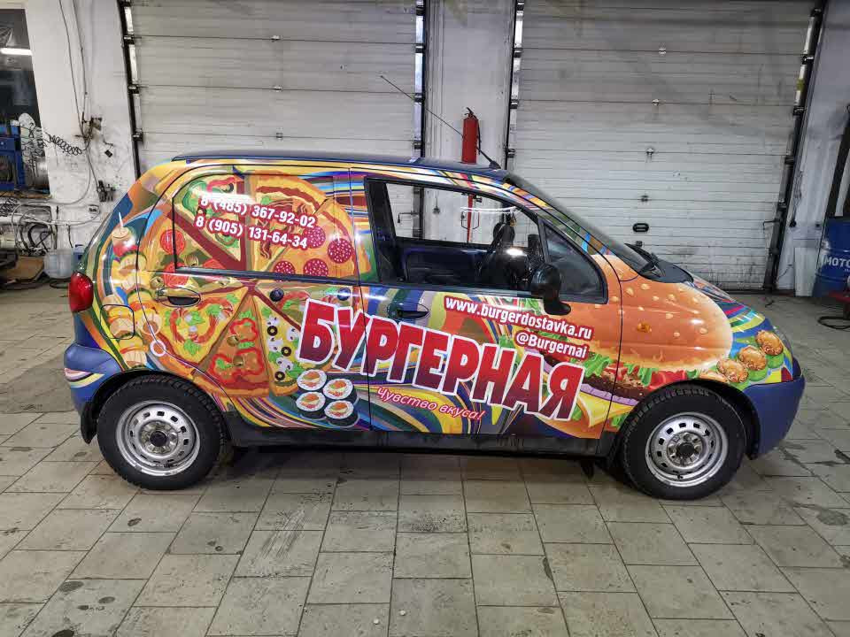 Полная оклейка автомобиля пленкой Orajet с ламинацией Oraguard для бургерной.