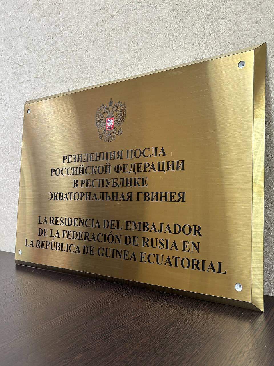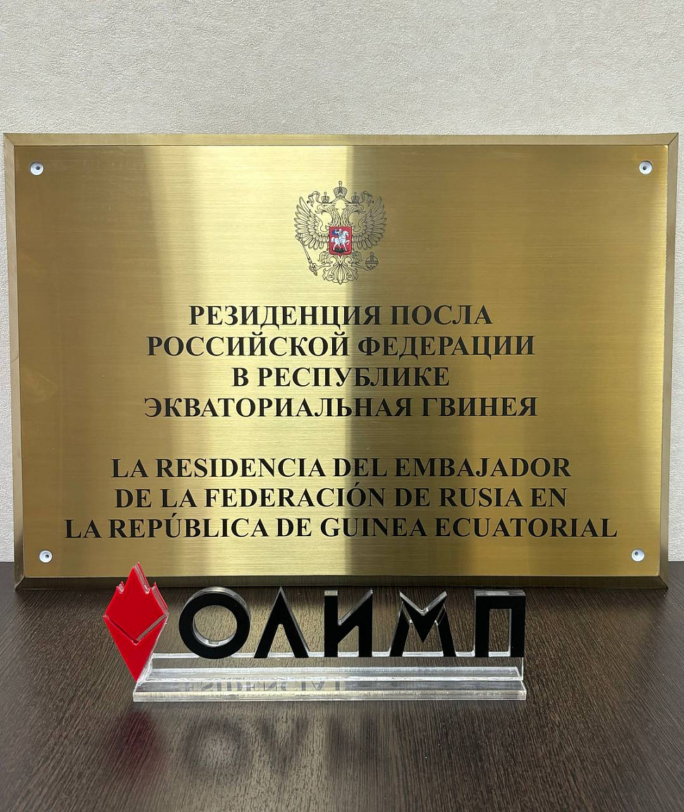 Представительная табличка на основе позолоченной нержавеющей стали толщиной 2 мм.